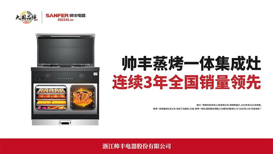 帥豐于2020年10月19日在上交所掛牌敲鑼?zhuān)蔀榧稍畎鍓K首家主板上市企業(yè)。股票簡(jiǎn)稱(chēng):帥豐電器,股票代碼:605336.SH。在科技創(chuàng)新中,帥豐擁有11項(xiàng)中國(guó)發(fā)明專(zhuān)利,177項(xiàng)中國(guó)實(shí)用新型專(zhuān)利,142項(xiàng)中國(guó)外觀設(shè)計(jì)專(zhuān)利。通過(guò)締造有溫度的產(chǎn)品,賦予廚電一體化、集成式的“智慧大腦”。根據(jù)歐睿國(guó)際調(diào)研數(shù)據(jù)顯示,帥豐蒸烤一體集成灶2019年、2020年、2021年連續(xù)三年全國(guó)銷(xiāo)量領(lǐng)先。