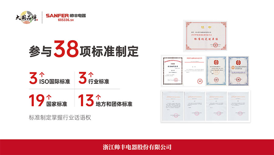 帥豐電器堅(jiān)持以品質(zhì)為導(dǎo)向,不斷完成“布新、創(chuàng)新、刷新”等突破。持續(xù)以“高端化、科技化、健康化”三大戰(zhàn)略為引擎,擁有“中國(guó)合格評(píng)定國(guó)家認(rèn)可委員會(huì)認(rèn)可實(shí)驗(yàn)室”,包含燃?xì)?、電氣、噪聲、氣味降低度、油脂分離度、環(huán)境、包裝等多個(gè)行業(yè)一流的試驗(yàn)室,擁有國(guó)際國(guó)內(nèi)先進(jìn)的專(zhuān)業(yè)檢測(cè)設(shè)備,對(duì)集成灶產(chǎn)品各項(xiàng)指標(biāo)進(jìn)行全方位的檢測(cè),為公司集成灶產(chǎn)品提供了質(zhì)量保障,獲得紹興市人民政府頒發(fā)的“市長(zhǎng)質(zhì)量獎(jiǎng)”和中國(guó)質(zhì)量檢驗(yàn)協(xié)會(huì)頒發(fā)的“全國(guó)產(chǎn)品和服務(wù)質(zhì)量誠(chéng)信示范企業(yè)”“全國(guó)廚房電器行業(yè)質(zhì)量領(lǐng)先品牌”等榮譽(yù)。作為技術(shù)標(biāo)準(zhǔn)和行業(yè)規(guī)范的引領(lǐng)者,帥豐還參與3個(gè)ISO國(guó)際標(biāo)準(zhǔn)、20個(gè)國(guó)家標(biāo)準(zhǔn),4個(gè)行業(yè)標(biāo)準(zhǔn),16個(gè)地方團(tuán)體標(biāo)準(zhǔn)的起草與制定工作。