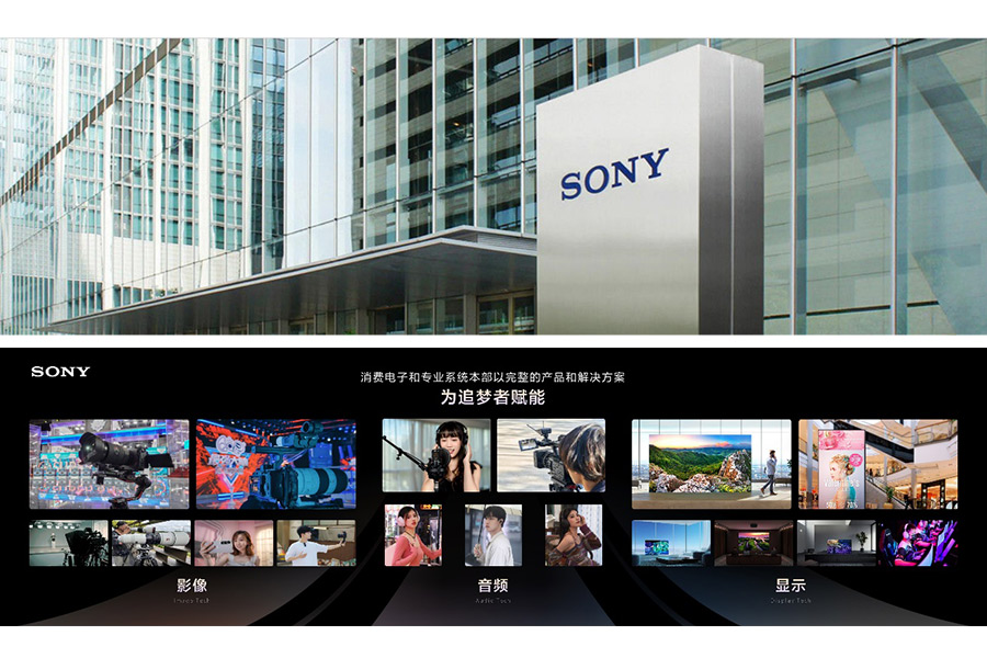 索尼于2023年發(fā)布在華愿景——“激發(fā)靈感與熱情,與追夢者共創(chuàng)感動”,除索尼(中國)有限公司以外,索尼影視娛樂公司、索尼音樂娛樂公司及旗下以動畫為主營業(yè)務的Aniplex、索尼互動娛樂公司、索尼音樂發(fā)行公司等索尼集團旗下企業(yè)亦陸續(xù)在中國開展相關(guān)業(yè)務,致力于為中國廣大消費者提供由索尼集團豐富的硬件、軟件和內(nèi)容打造的“一個索尼(One Sony)”的娛樂體驗。