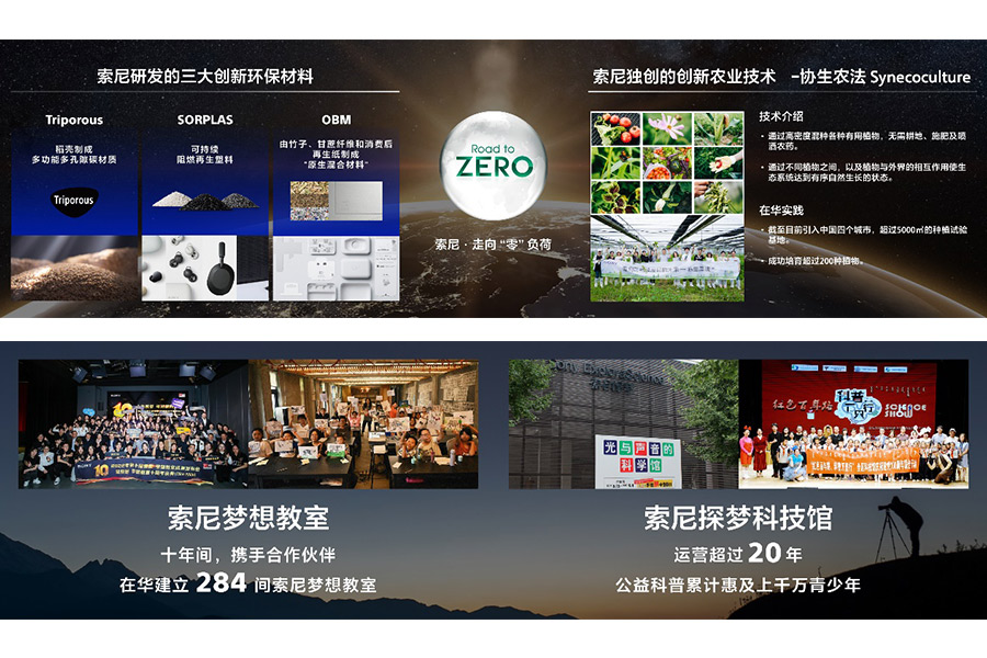 在發(fā)展各項業(yè)務的同時,索尼矢志不渝履行對地球的“責任”,并通過技術(shù)和業(yè)務為地球做“貢獻”。在“走向零負荷”的環(huán)境目標指導下,在中國,索尼已從2020-2022財年連續(xù)實現(xiàn)100%可再生能源用電,并將多樣創(chuàng)新的環(huán)保技術(shù)成果引入中國:包括將多樣植物高密度混種以回歸自然生態(tài)的“協(xié)生農(nóng)法”,索尼獨自開發(fā)的三大創(chuàng)新環(huán)保材料SORPLARSTM,TriporousTM,OBM等等。