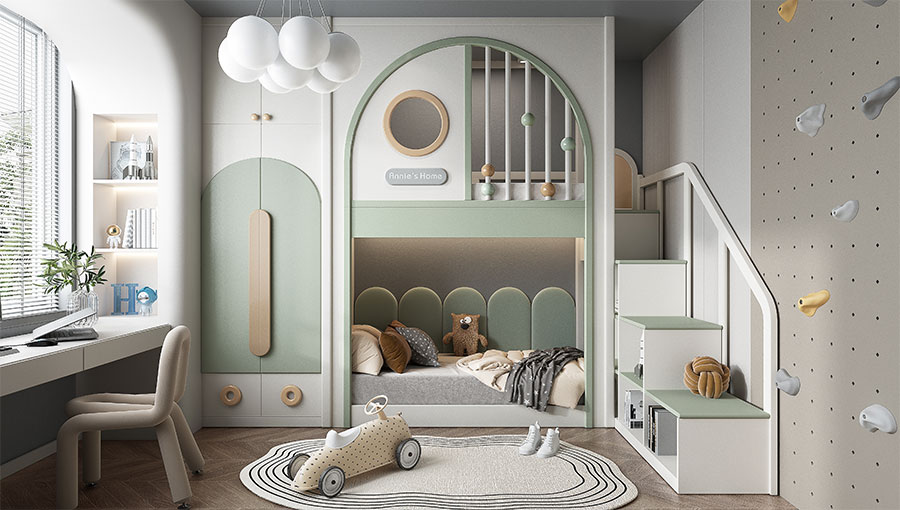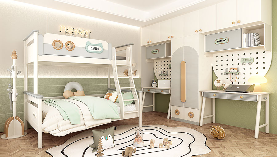 松堡王國圍繞孩子成長居家生活四大基礎功能:學習區(qū)、收納區(qū)、娛樂區(qū)、睡眠區(qū),深度交合孩子成長方式,以美學設計、親子陪伴、趣味模塊為新空間設計概念,正向引導孩子建立良好生活習慣,形成成長生活秩序感,用愛為孩子打造有趣的成長空間。