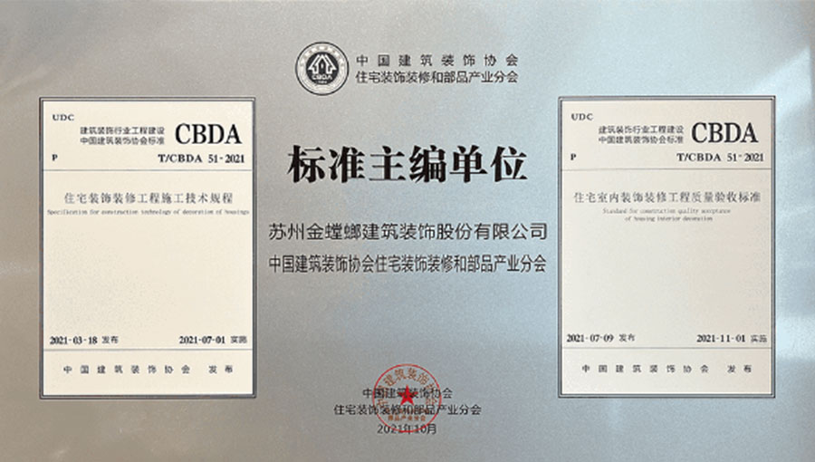 2021年,作為核心主編及實(shí)施單位參與了CBDA《住宅裝飾裝修工程施工技術(shù)規(guī)程》和CBDA《住宅室內(nèi)裝飾裝修工程施工質(zhì)量驗(yàn)收標(biāo)準(zhǔn)》的制訂工作,以高標(biāo)準(zhǔn)嚴(yán)要求完成住宅裝飾行業(yè)第一部規(guī)范標(biāo)準(zhǔn)制定。