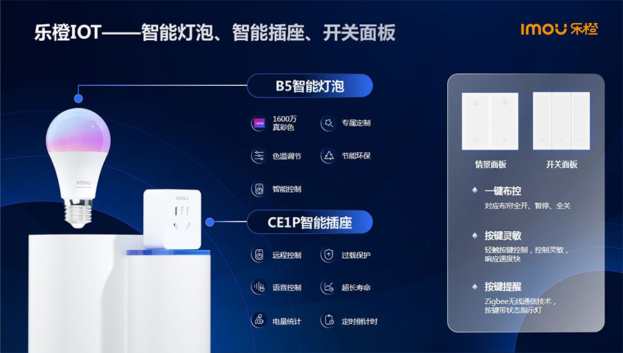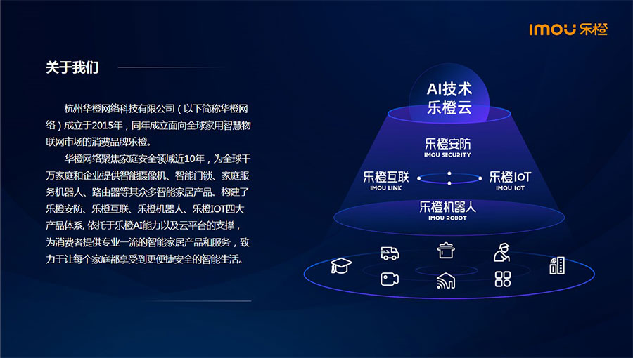 主要產(chǎn)品:樂(lè)橙智能攝像機(jī)、智能門鎖、門鈴、路由器等