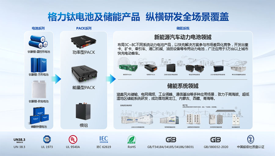 以完善的研發(fā)體系,公司加快技術(shù)創(chuàng)新與產(chǎn)業(yè)升級的步伐。公司研發(fā)的格力鈦電池安全性長期領(lǐng)跑行業(yè),憑借具有高安全、大倍率、快充放、耐寬溫、長壽命等特性,被選為“國家制造業(yè)單項冠軍產(chǎn)品”,廣泛應(yīng)用于新能源汽車以及工商業(yè)園區(qū)、通訊基站、電網(wǎng)調(diào)頻、軌道交通、風光消納、船舶岸電、家庭住宅、軍事科研等儲能領(lǐng)域,具有廣闊的市場前景和應(yīng)用價值。目前,格力鈦儲能產(chǎn)品已在丹麥、瑞士、芬蘭等全球30多個國家和地區(qū)使用,新能源汽車產(chǎn)品在北京、杭州、武漢、成都、青島、哈爾濱、包頭、??诘热?40多座城市運營,12年全球零電池事故安全運行。