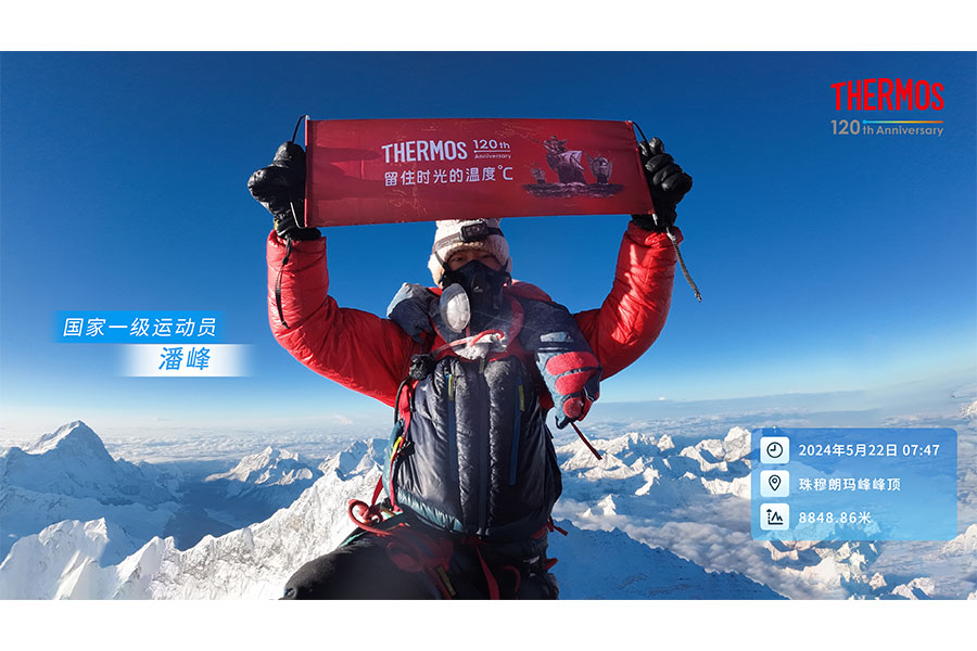2024年5月22日上午7點(diǎn)47分,120年歷史的全球知名保溫用品品牌膳魔師,跟隨國(guó)家一級(jí)運(yùn)動(dòng)員潘峰成功登頂海拔8848.86米的世界之巔——珠穆朗瑪峰。在千年積雪和萬(wàn)年冰川的崎嶇險(xiǎn)途上,在純凈稀薄的空氣和呼嘯的寒風(fēng)中,膳魔師再一次見(jiàn)證了人類的勇敢和無(wú)畏。