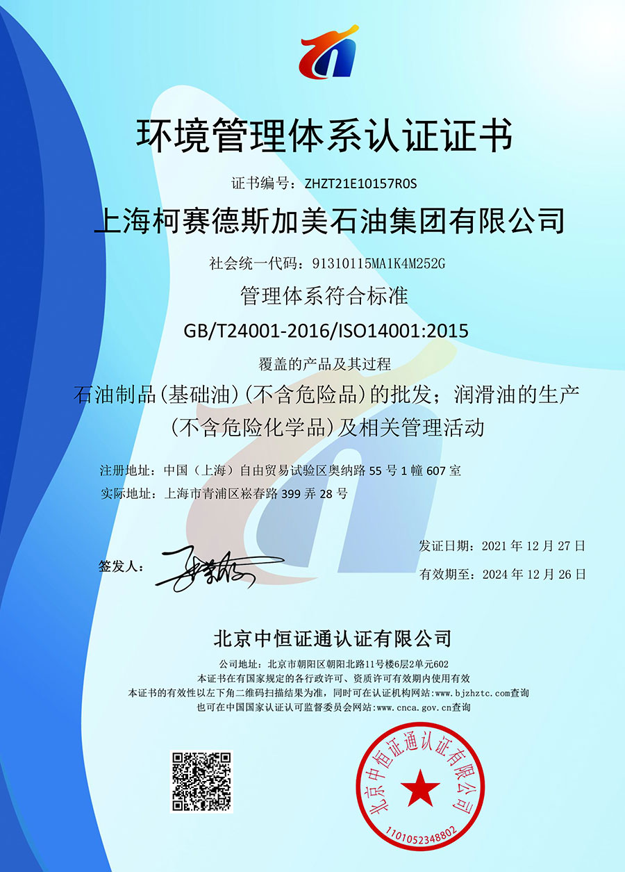 柯賽德斯集團(tuán)公司統(tǒng)一遵循嚴(yán)格的質(zhì)量保證體系,先后通過了武器裝備質(zhì)量管理體系認(rèn)證GJB9001C-2017、ISO/TS16949、IS09001質(zhì)量體系認(rèn)證、1S014001環(huán)境體系認(rèn)證及ISO45001:2018職業(yè)健康安全管理體系認(rèn)證。隨著業(yè)務(wù)領(lǐng)域的不斷擴(kuò)展,目前柯賽德斯集團(tuán)公司先后與多家世界能源、化工方面的巨頭建立了產(chǎn)品服務(wù)、供應(yīng)保障、技術(shù)合作、技術(shù)特別支持單位等方面的戰(zhàn)略合作關(guān)系。今天,柯賽德斯集團(tuán)旗下管理著三大潤滑油品牌,實現(xiàn)了經(jīng)營上的多元化戰(zhàn)略格局。