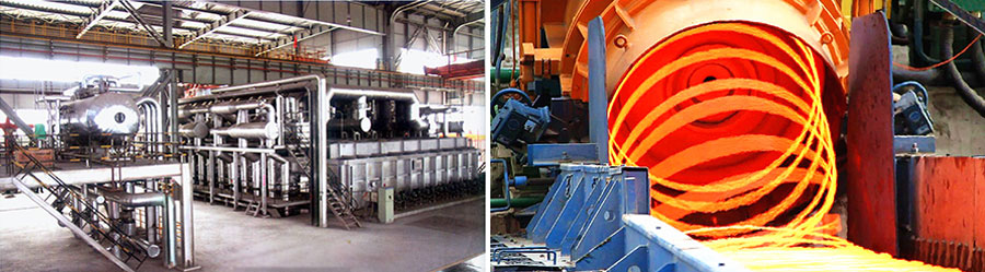 80萬(wàn)噸棒材軋制線由18架軋機(jī)組成。軋機(jī)全部為平立交替布置,實(shí)現(xiàn)了全連續(xù)軋制工藝。前8架為美國(guó)Morgen型牌坊式軋機(jī),后10架全部為高剛度短應(yīng)力線軋機(jī)。全線生產(chǎn)可實(shí)現(xiàn)無(wú)扭轉(zhuǎn)、無(wú)張力軋制,能夠?qū)Ω鞣N規(guī)格產(chǎn)品進(jìn)行軋后預(yù)熱處理。