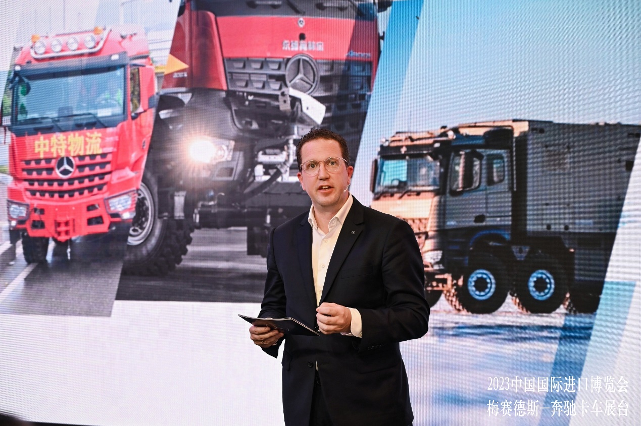 秦坦介紹首次亮相的梅賽德斯-奔馳進口卡車全系產(chǎn)品