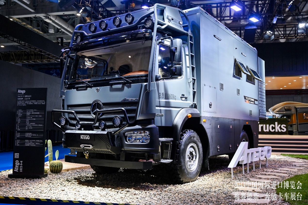 繼第五屆進博會上首展梅賽德斯-奔馳Arocs 4x4越野旅居車并大獲成功后,梅賽德斯-奔馳卡車在今年引入更豐富的旅居車產(chǎn)品組合。此次展出的Atego越野旅居車和宇通專用車合作,基于中型卡車Atego 1023 4×4改裝,C照可開,容易駕馭,更適合舒適型長途越野旅居。這也是在我國旅居車銷量創(chuàng)歷史新高的背景下,梅賽德斯-奔馳卡車對中國客戶需求的積極回應。