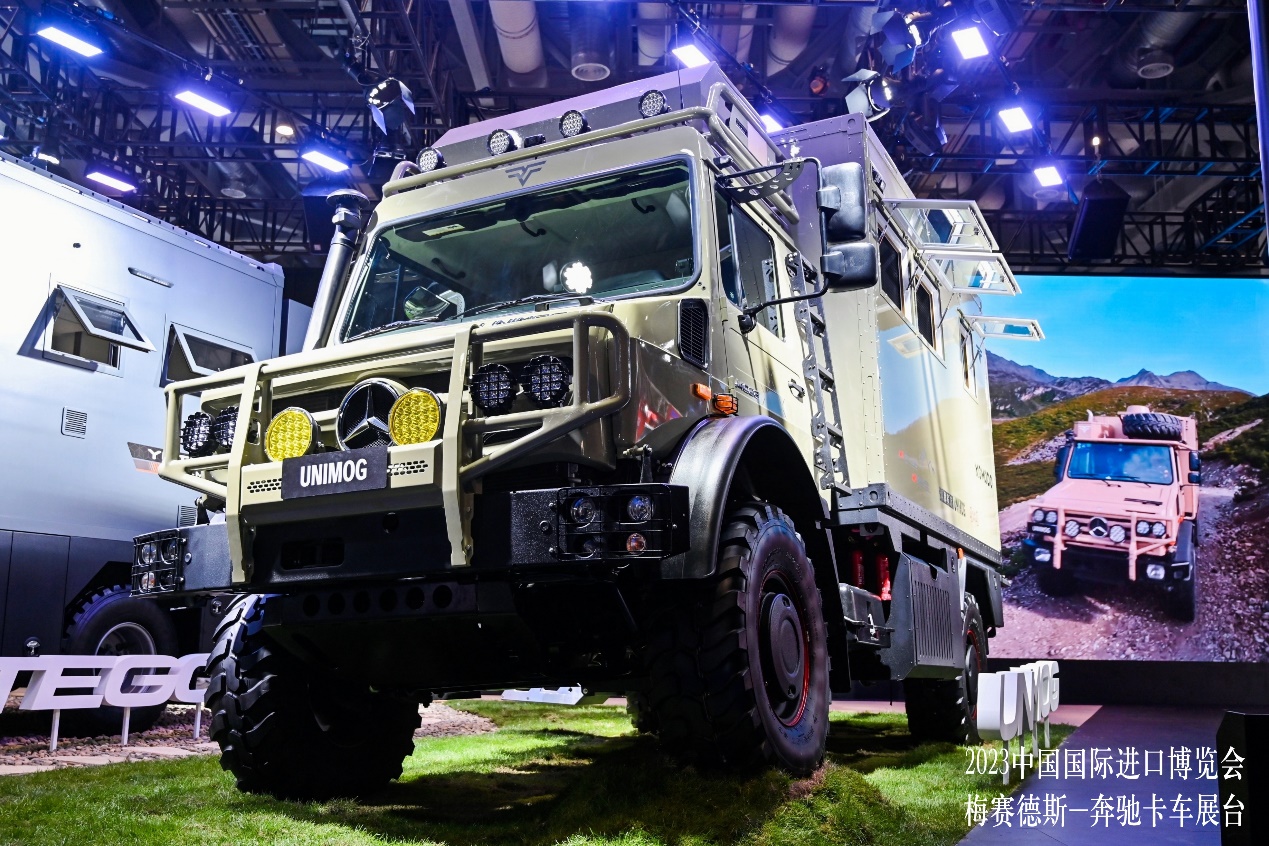 本次參展的Unimog U 4023越野旅居車為新產(chǎn)品首次在華亮相,和四川艾可沛合作開發(fā)。頗具傳奇色彩的Unimog車型誕生于1946年,在設計上極為與眾不同,具有出類拔萃的通過性及涉水深度;還可應用于多種行業(yè),如越野旅居、災害救援、機場除雪等。