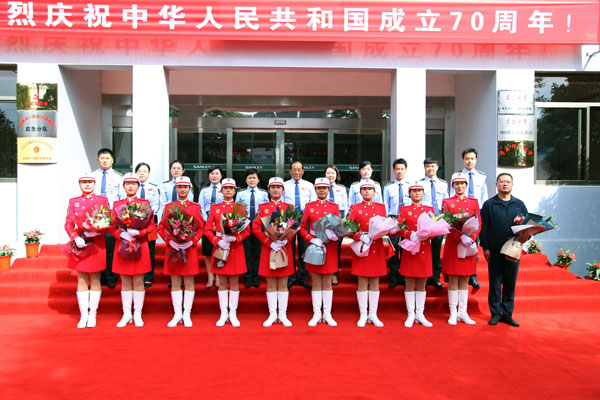 2019年10月5日是個(gè)歡樂的日子,青島流亭機(jī)場,9名身著紅色受閱服裝的姑娘們一下飛機(jī),就受到了熱烈歡迎,幾名姑娘在與前來迎接她們的同事?lián)肀r(shí)激動(dòng)地流下了淚水。這9名成員是青島三利集團(tuán)參加慶祝中華人民共和國成立70周年大閱兵的鏗鏘玫瑰。就在幾天前,她們作為民兵方隊(duì)成員走過天安門廣場,接受祖國和人民檢閱,成為許多人眼中一道靚麗的風(fēng)景線。
