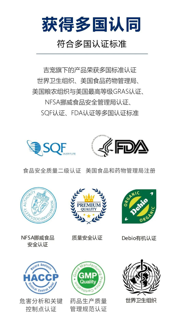 吉寵旗下的產(chǎn)品榮獲多國標準認證