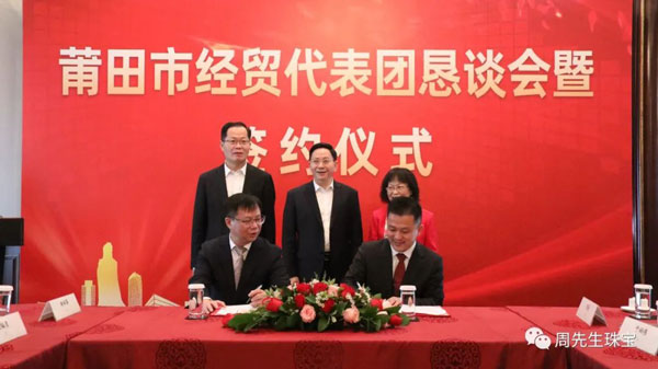 懇談會期間,莆田經(jīng)貿(mào)代表團與眾多莆仙籍企業(yè)家面對面交流,就共同推進項目合作達成諸多意向,舉行了簽約儀式。香港周先生珠寶金行國際集團有限公司作為應(yīng)邀出席的企業(yè)之一,在眾多領(lǐng)導的見證下簽署“香港周先生珠寶金行國際集團有限公司供應(yīng)鏈平臺”項目合作協(xié)議 。