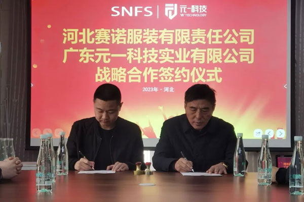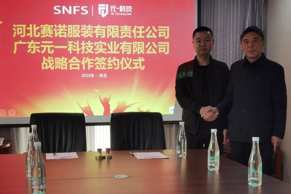 2023年2月27日,河北賽諾服裝有限責(zé)任公司同廣東元一科技實(shí)業(yè)有限公司在石家莊品匯大廈簽署了戰(zhàn)略合作協(xié)議,河北賽諾將引進(jìn)十臺價(jià)值數(shù)百萬元的自動鋪布和自動裁床設(shè)備,旨在通過加強(qiáng)雙方在科技方面的協(xié)作進(jìn)一步深化戰(zhàn)略伙伴關(guān)系,推動雙方在數(shù)字化、自動化、智能化等方面的深度合作和公司的長遠(yuǎn)發(fā)展。