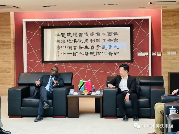 2023年 3月6 日,坦桑尼亞駐華大使H. E. Mbelwa Kairuki(H ·E ·姆貝爾瓦 ·凱魯基)先生一行訪問英沃電梯有限公司,董事長(zhǎng)張力對(duì)凱魯基大使來訪表示熱烈歡迎,并介紹了英沃電梯發(fā)展的最新情況,雙方就深化合作進(jìn)行了交流探討。