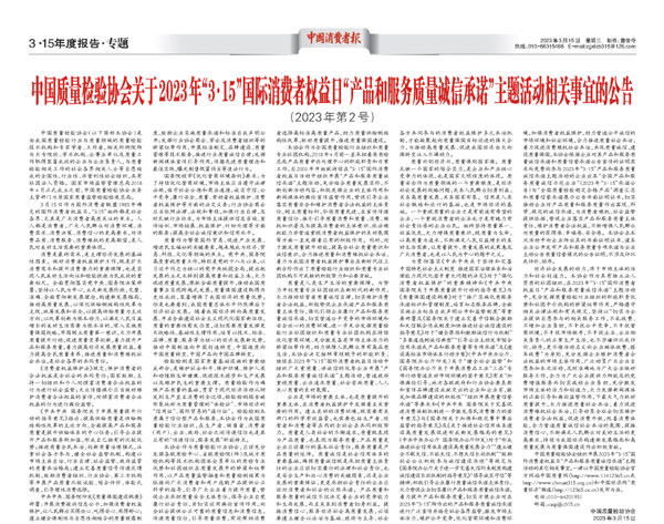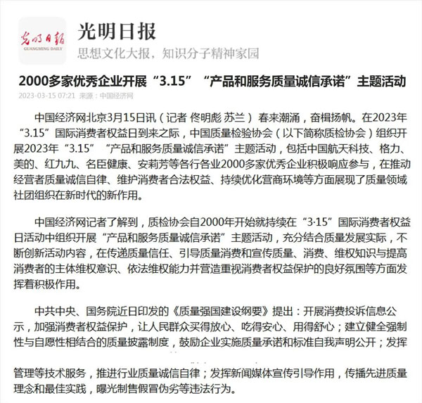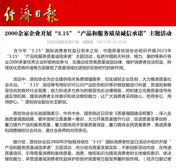 ——中國質(zhì)量檢驗協(xié)會組織2000多家優(yōu)秀典范企業(yè)開展“3.15”產(chǎn)品和服務(wù)質(zhì)量誠信承諾活動