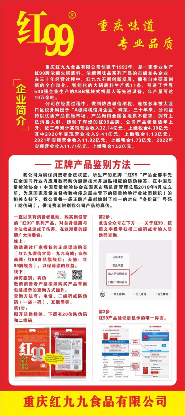 在剛剛閉幕的全國兩會上,政府工作報告明確指出,要著力擴大國內(nèi)需求,把恢復(fù)和擴大消費擺在優(yōu)先位置。作為質(zhì)檢協(xié)會會員企業(yè),我國重慶麻辣火鍋復(fù)合調(diào)料行業(yè)領(lǐng)軍企業(yè)重慶紅九九食品有限公司董事長黃萬明直言:“高質(zhì)量發(fā)展離不開產(chǎn)品和服務(wù)質(zhì)量的提升,產(chǎn)品和服務(wù)質(zhì)量提升是消費的助推器。消費作為內(nèi)需的重要組成部分,促進居民消費也是實施擴大內(nèi)需戰(zhàn)略的重要抓手。促進消費升級,關(guān)鍵要在供給端的產(chǎn)品和服務(wù)質(zhì)量提升方面去發(fā)力。多年來,在質(zhì)檢協(xié)會的支持下,重慶火鍋底料行業(yè)在發(fā)展中不斷提質(zhì)升級,視質(zhì)量為生命,以高質(zhì)量為追求,不但順應(yīng)了消費者的需求變化,也切實滿足了人民群眾的美好生活需要。”
