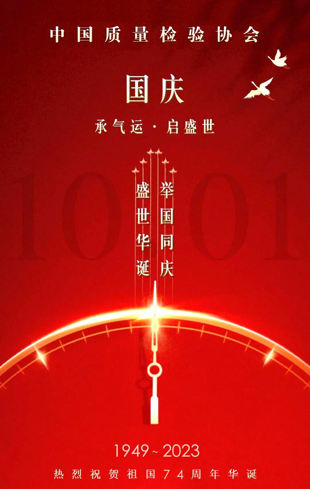 山河披錦繡,盛世寫華章。2023年10月1日,我們迎來中華人民共和國成立74歲華誕。中國質(zhì)量檢驗(yàn)協(xié)會(huì)謹(jǐn)此攜全體會(huì)員誠摯祝福偉大的中華人民共和國:生日快樂!