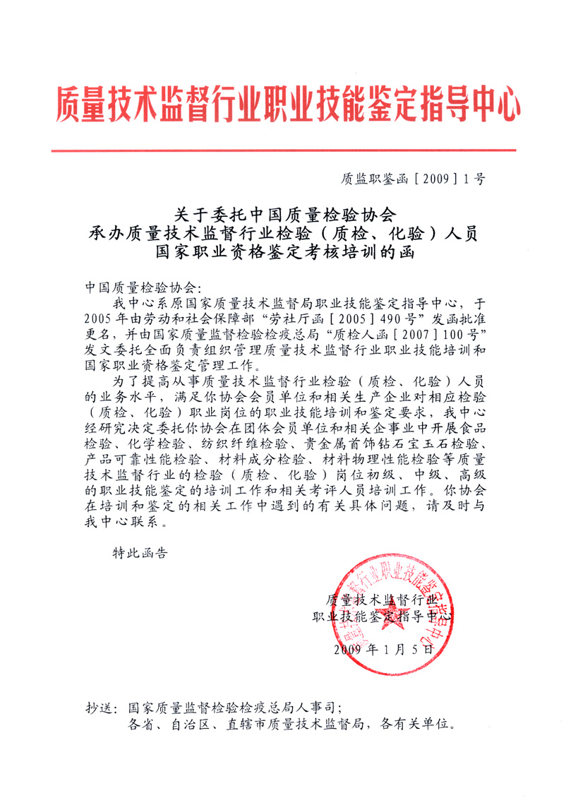 (2)、按相應(yīng)的國(guó)家職業(yè)標(biāo)準(zhǔn)及有關(guān)規(guī)定,檢驗(yàn)人員職業(yè)國(guó)家資格技能鑒定分為理論知識(shí)考試和技能操作考核,分為初級(jí)、中級(jí)、高級(jí)三大類,每大類按檢驗(yàn)職業(yè)崗位分為相應(yīng)的小類;理論知識(shí)考試采用筆試方式,技能操作考核采用實(shí)際操作方式;理論知識(shí)考試和技能操作考核均實(shí)行百分制,成績(jī)皆達(dá)60分以上為鑒定合格;鑒定時(shí)間、鑒定場(chǎng)所等事宜將另行通知。